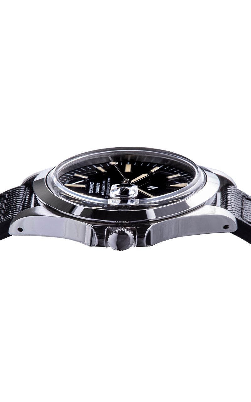NH35 / 日本製ムーブメント自動巻き(手巻き付き)平均日差+45秒~-35秒(5℃~35℃において)駆動時間 最大巻上時約41時間持続ステンレススチールケースレンズ付きボックス型アクリルガラスケース径 46.6×39.0×12.9mm(リューズ、突起部除く)かん幅 20mm重量 64g本牛革(リザード型押し)ストラップ日常生活用強化防水(5気圧防水)LumiNova G-300F 蓄光塗料
