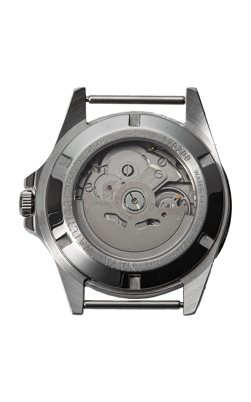 NH35 / 日本製ムーブメント自動巻き(手巻き付き)平均日差+45秒~-35秒(5℃~35℃において)駆動時間 最大巻上時約41時間持続ステンレススチールケースレンズ付きボックス型アクリルガラスケース径 46.6×39.0×12.9mm(リューズ、突起部除く)かん幅 20mm重量 66g文字盤 / NAVYポリエステル ストラップ / NAVY日常生活用強化防水(5気圧防水)LumiNova G-300F 蓄光塗料