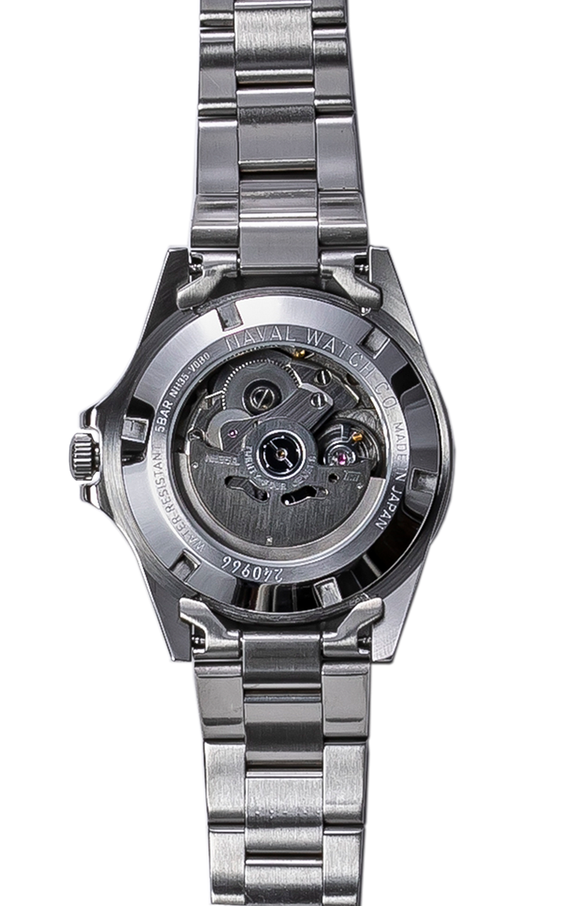 NH35 / 日本製ムーブメント自動巻き(手巻き付き)平均日差+45秒~-35秒(5℃~35℃において)駆動時間 最大巻上時約41時間持続ステンレススチールケースレンズ付きボックス型アクリルガラスケース径 46.6×39.0×12.9mm(リューズ、突起部除く)かん幅 20mm重量 124gステンレススチール ブレスレット日常生活用強化防水(5気圧防水)LumiNova G-300F 蓄光塗料