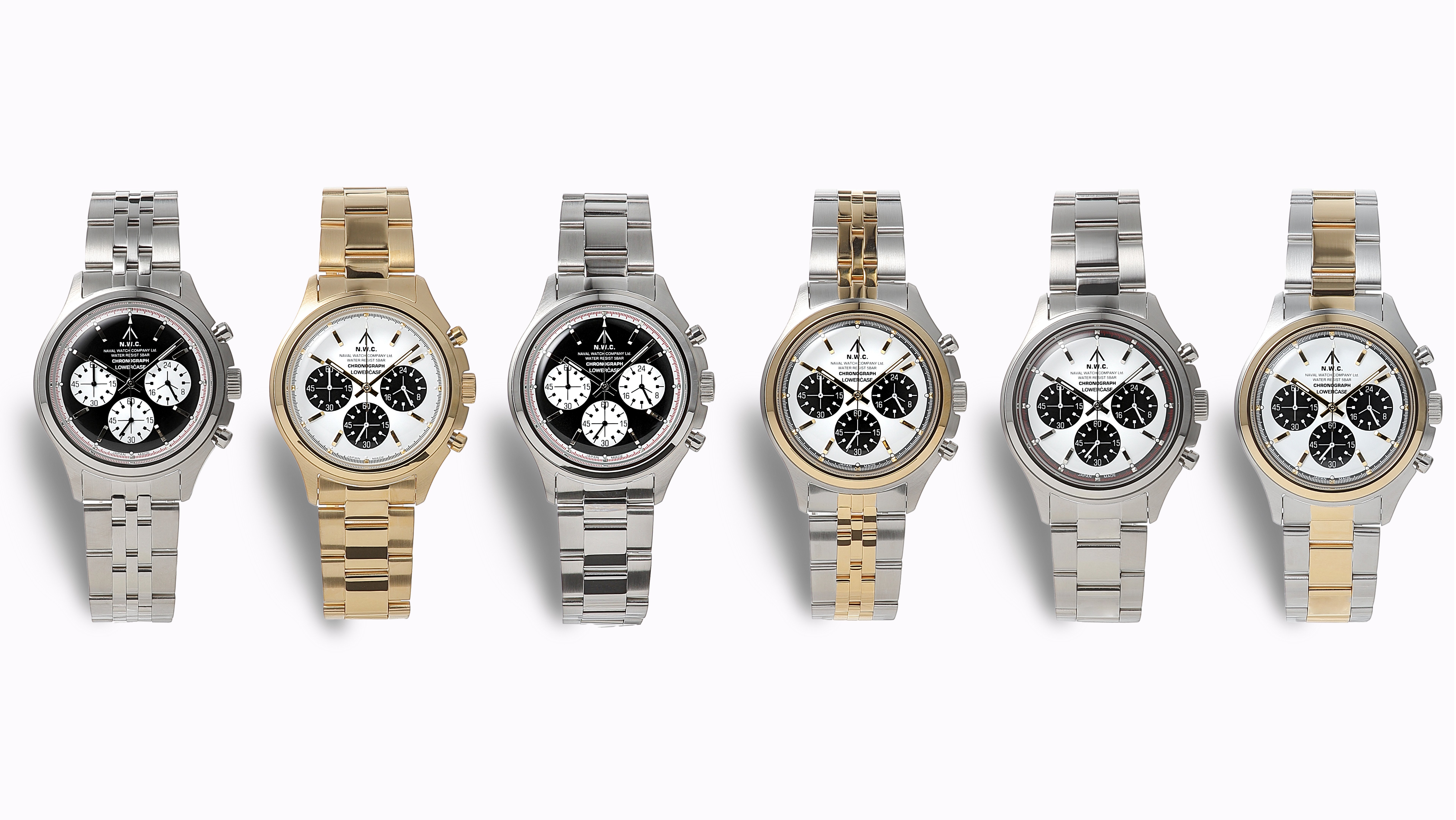 NAVAL WATCH Produced by LOWERCASEから、セレクトショップとのコラボレーション第9弾として新色クロノグラフモデル EXCLUSIVE MODEL 4機種・INLINE MODEL 2機種が登場。